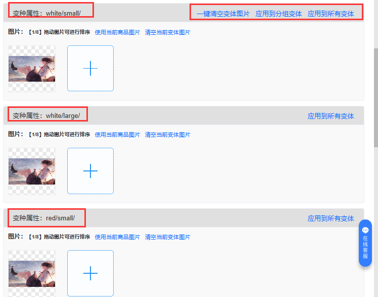 c.添加变体图片,根据变体属性添加对应图片