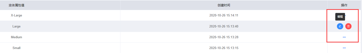 4.每条变体后面有编辑和删除按钮,可以进行修改和删减