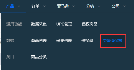 1.在导航栏中找到产品,点击变体值保留