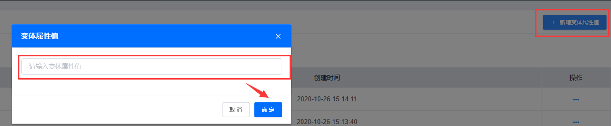 2.点击右上角新增变体值,添加需要保留的变体值,然后确定,添加完成