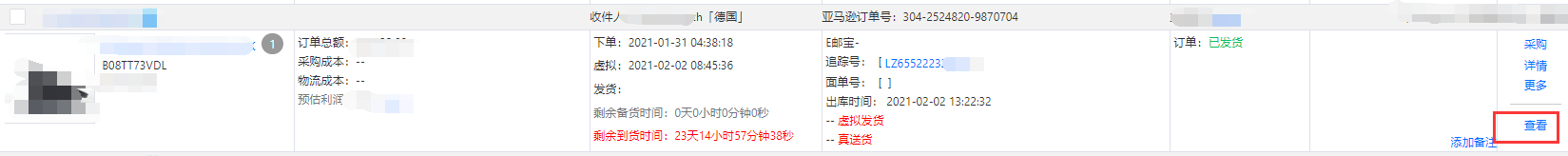 四、派单以后点击查看,可以看到派单时间,发货时间,以及追踪号,还可以申请退款