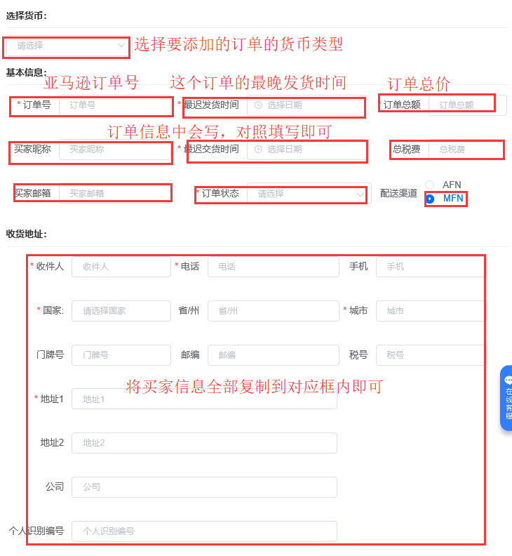 如果有商城税可以填写到这里,没有税可不用填写,佣金按照总金额自动计算,不用单独填写佣金!!!