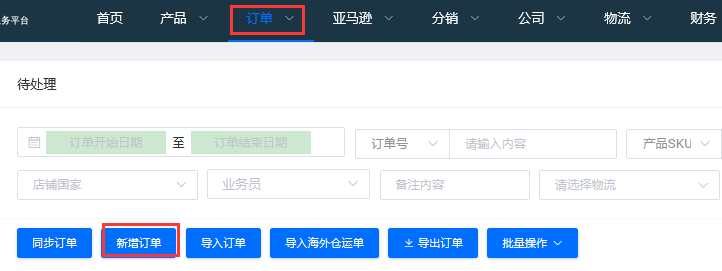 1.在订单页面中点击新增订单
