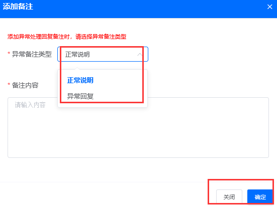 一、添加备注分为公司备注和异常回复,点击添加备注