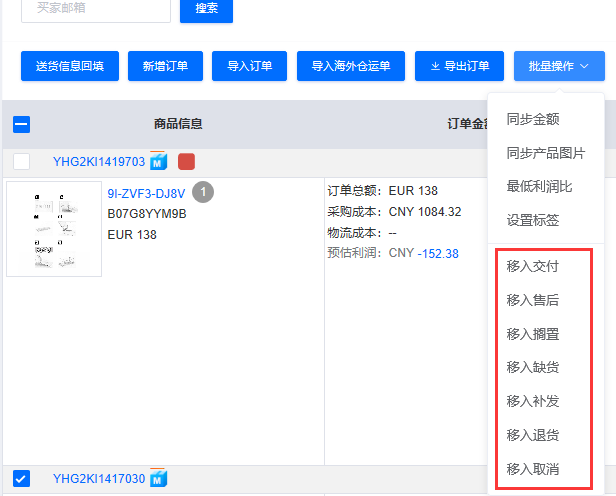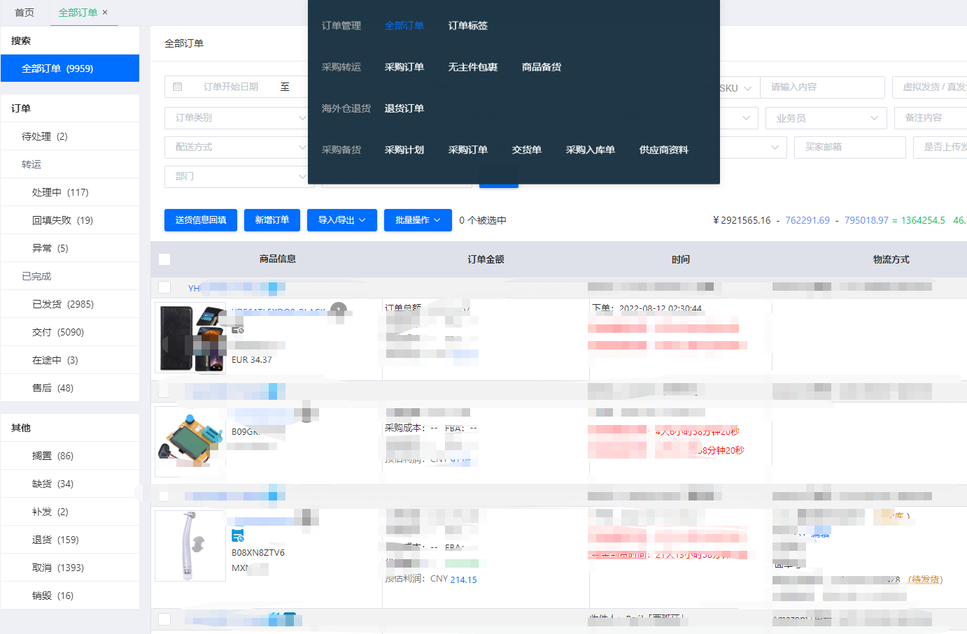 已发货:已经生成运单,将货物发出(状态不可手动更改)