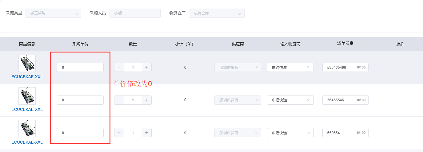 如果已经采购的话,需要将采购成本改为0,因为订单没有发货,点击订单状态,直接进去采购单修改,将金额修改为0,保存