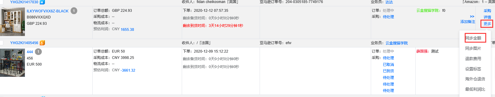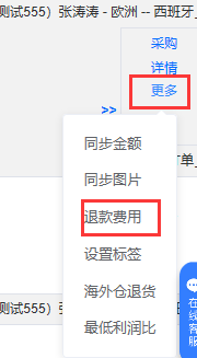 点击订单后面的更多,退款费用这里,将这个订单的金额进行更改,因为取消的话佣金会由亚马逊发返回,所以这里填写的退款费用是结余以后的费用