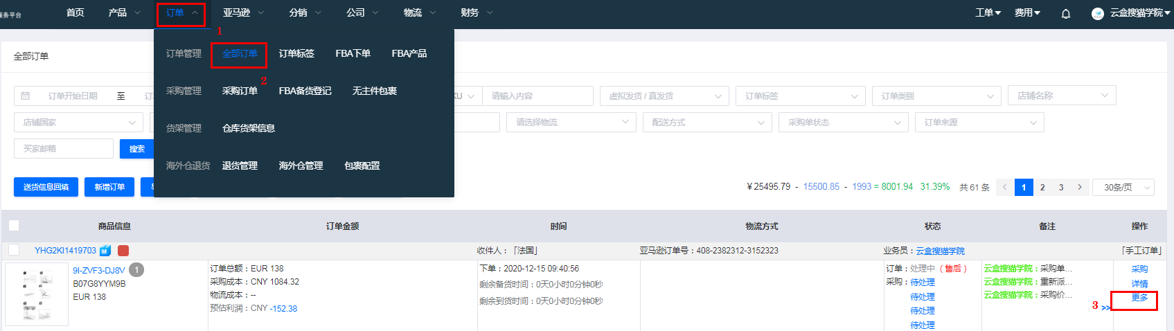 点击“订单”下“全部订单”,指定订单右侧“更多”按钮