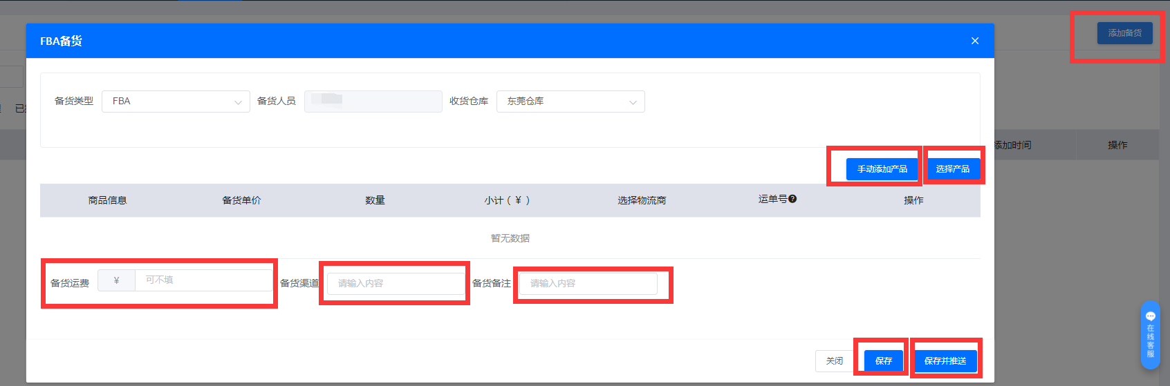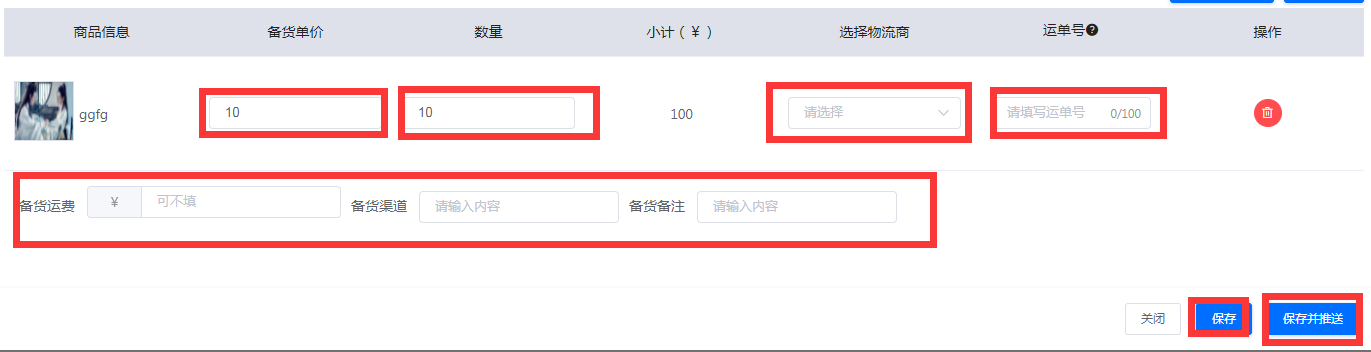 三、填写备货信息