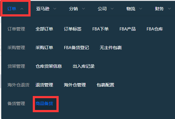 二、到系统里面点击FBA备货,将这个产品的货件发到深圳仓库进行入库上架的处理