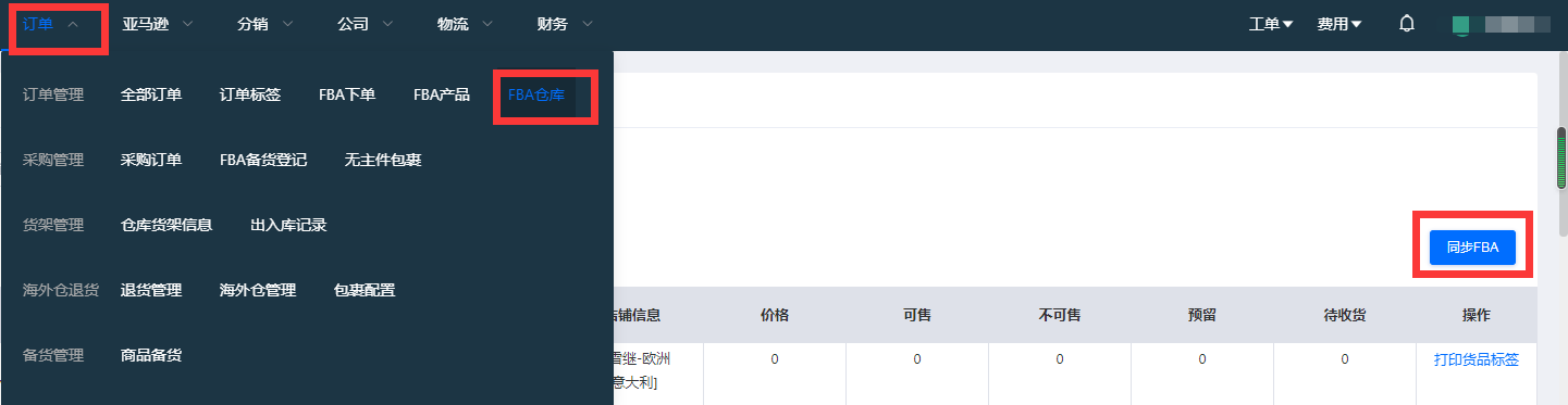 五、在订单-FBA仓库-同步FBA里面,将后台已经转好FBA货件同步到系统列表里面,进行发货出库,没有的话多同步几次