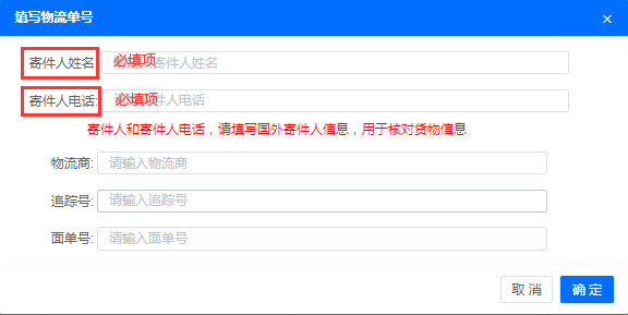编辑完成后点击 确定 确保无误后即可推送退货单 (推送完成后会收取20元入库费)