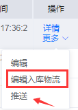点击 更多 编辑入库物流 填写买家退回时产生的物流信息