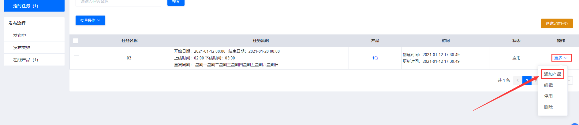定时任务创建完成后,可也在右边“更多”里面添加跟卖产品