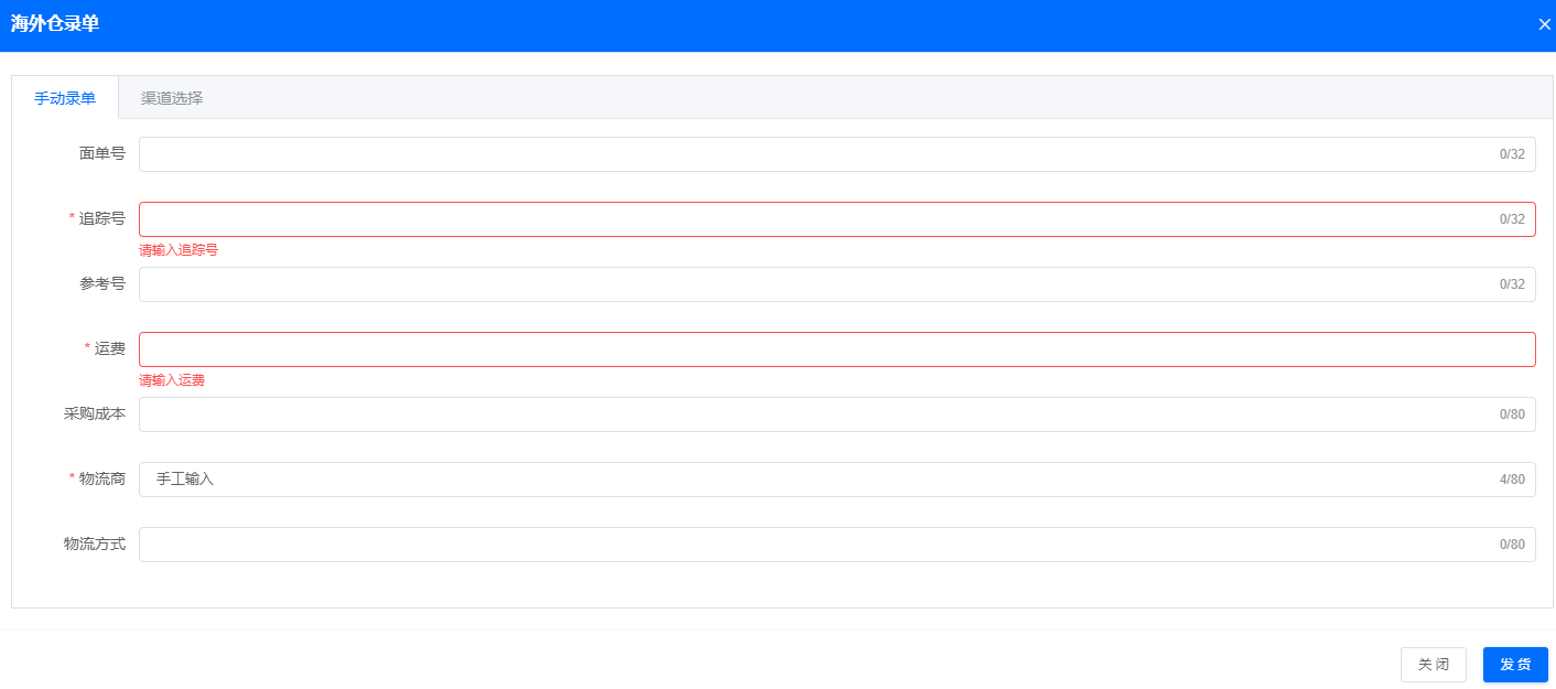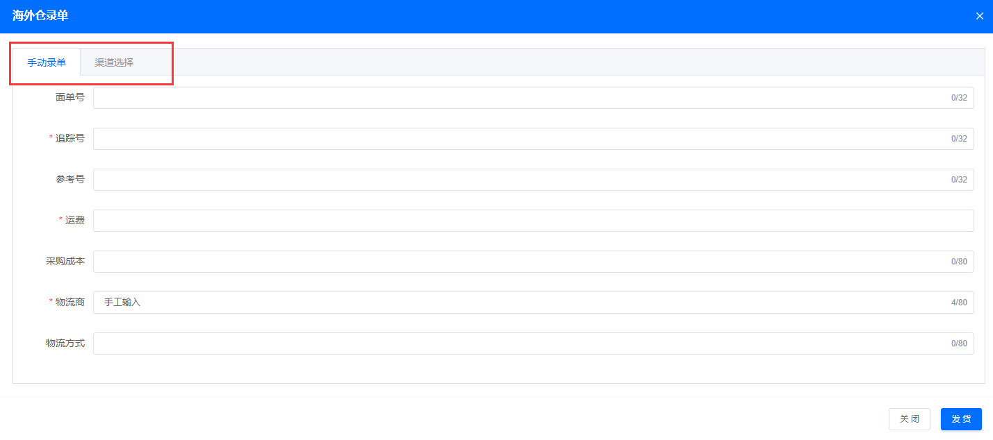 如果分销商有自己的海外仓可以在自己的海外仓发货后,点击“手工录单”把订单相应的信息填写完后点击“发货”即可
