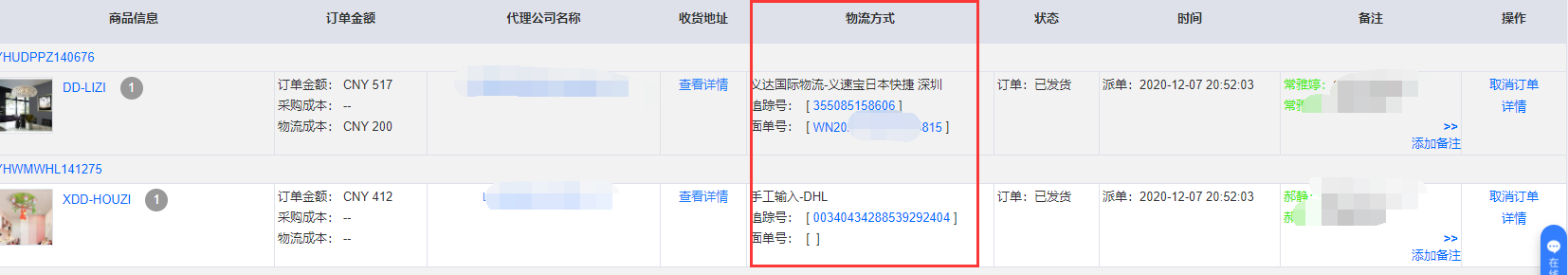 发货成功后订单会到达已发货状态,产生的物流信息都会在 订单——“物流方式”下面更新出来