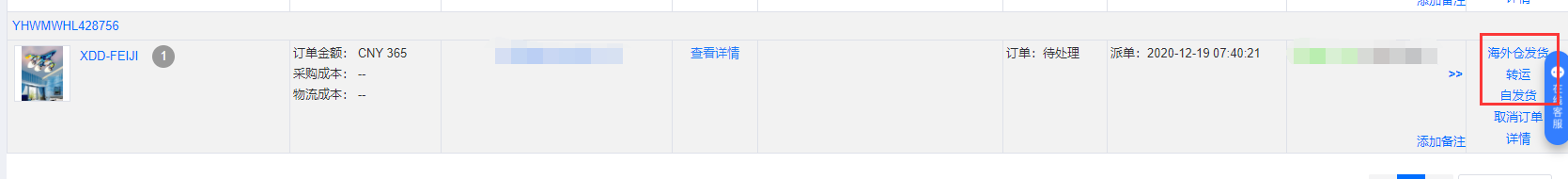 发货分为海外仓发货/转运/自发货三种