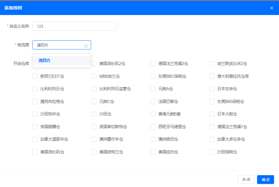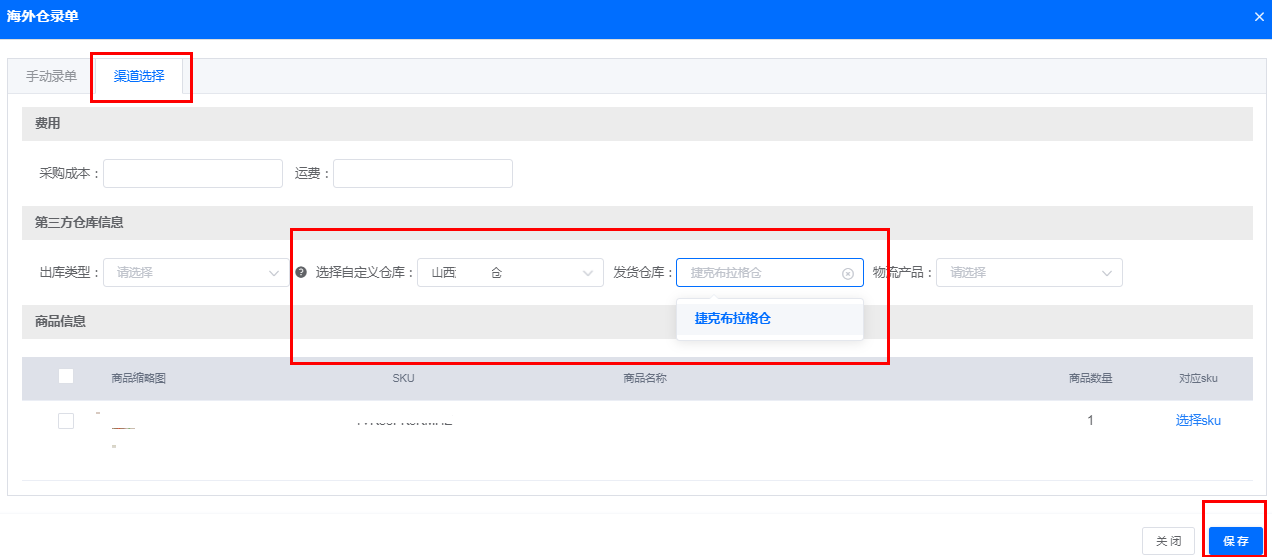 渠道选择——选择自定义仓库——选择发货仓库可查看添加的第三方仓库,选择完成后,点击“保存”即可