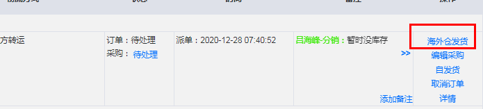 5.添加完成后,在分销订单——全部订单——编辑海外仓发货查看