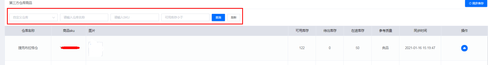 2.点击右上角的“同步库存”