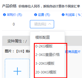 2.已有系统直接设置好的运费模板,可直接选择使用