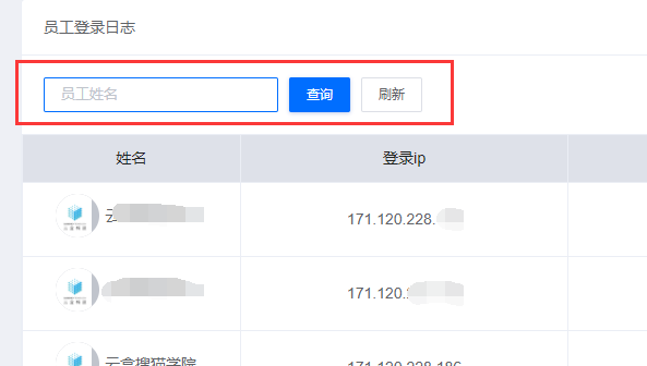 如果想查询某个员工账号的登录日志,可在左上角输入员工姓名进行准确查询