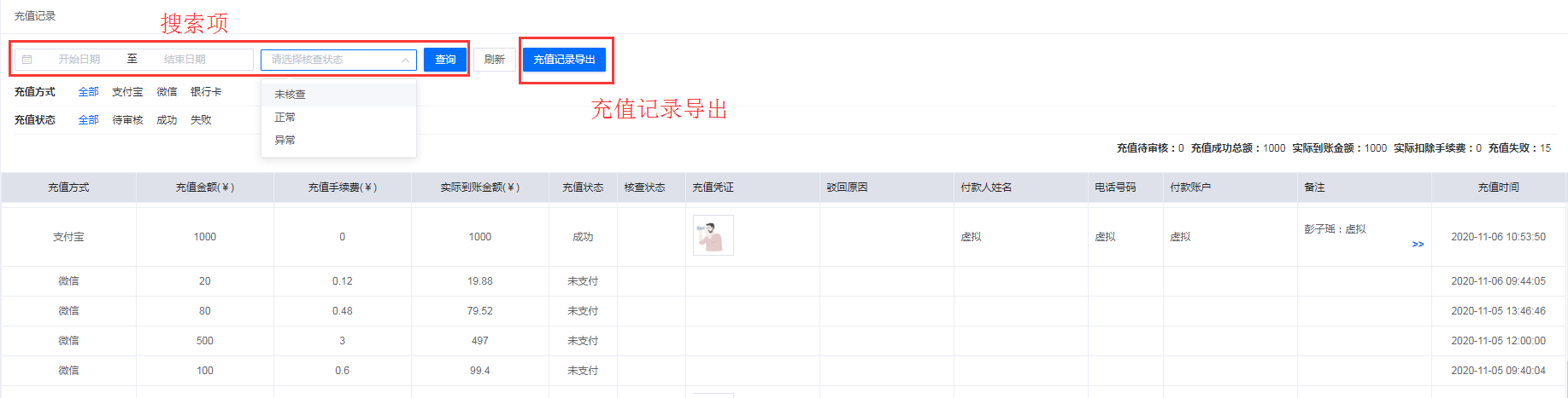 充值记录导出