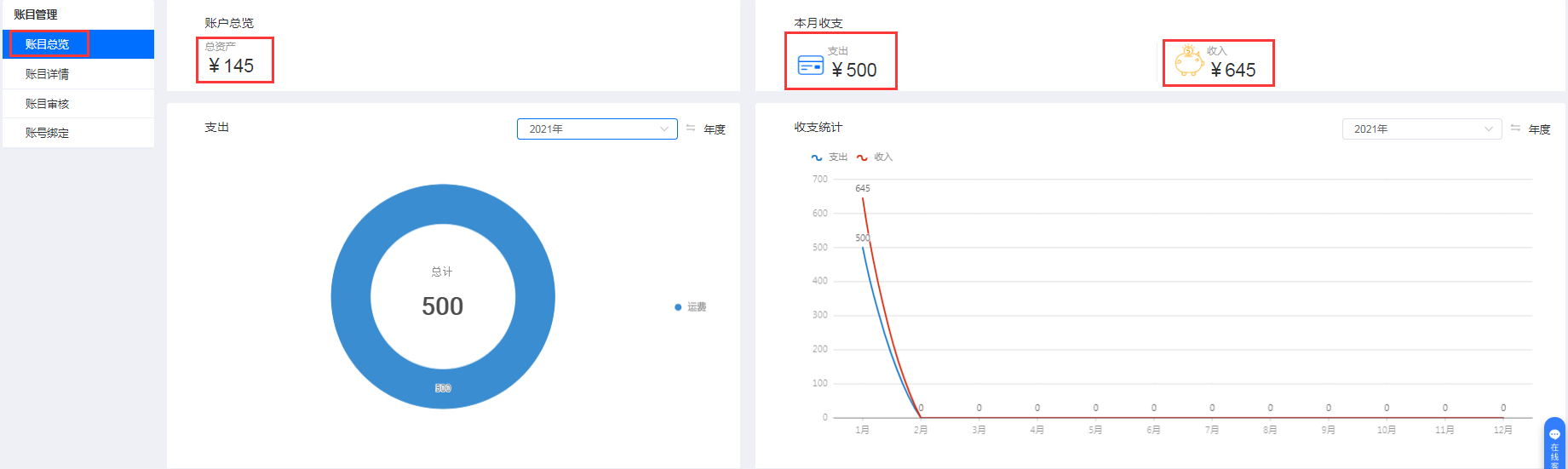 12.总账户可以查看 账目总览,随时了解公司营收详情