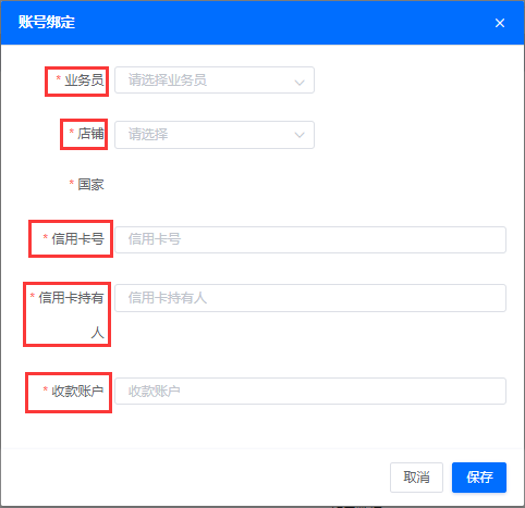 3.各设置对应账户的 对应收款和付款卡,方便查询管理。
