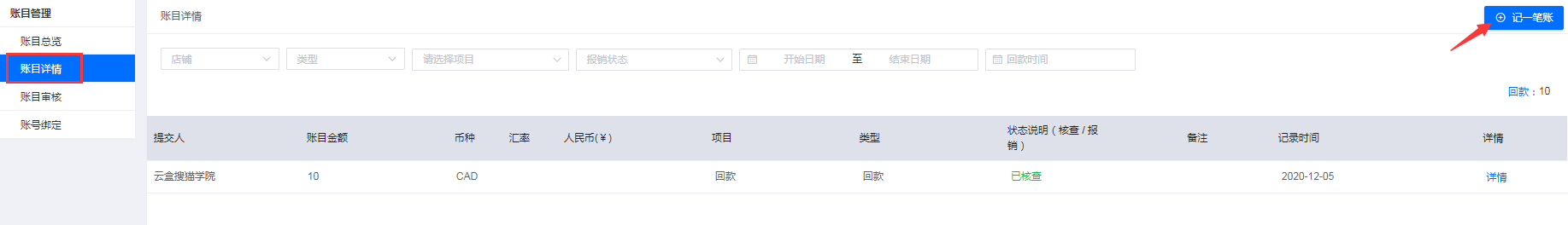 4.可以“账目详情”里面,记一笔任何收入和支出