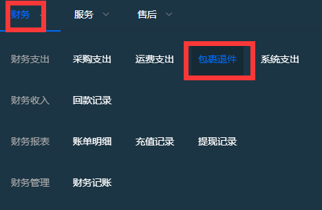1.点击 财务 - 包裹退件 可查看退回厂家的运费、物流底单