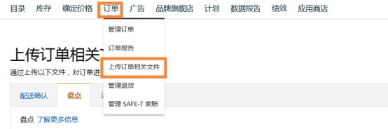 第一步:进入卖家后台 找到订单 点击下拉框中的上传订单相关文件