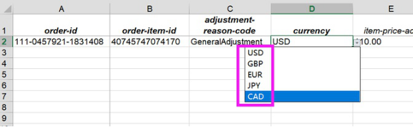 3- adjustment-reason-code:选择具体的退款原因,目前表单中一共提供了8个可选的原因,根据实际情况去选择即可。一般协商后退款的话选择GeneralAdjustment 这个原因的比较多。