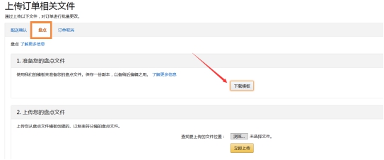 第二步:下面有三个选项,配送确认,盘点,订单取消,我们点击盘点,然后下载模板将下载的模板保存到桌面